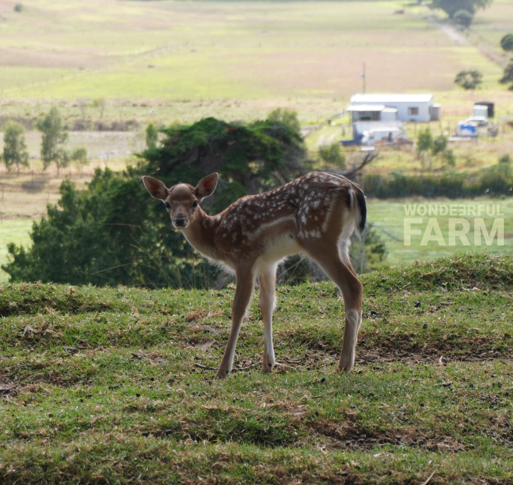 This little baby deer has just realised he's being watched. 'Who's there? I better run to mama!'